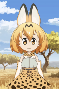 「例の顔」とは、けものフレンズのメインキャラクターである「サーバルちゃん」が、アニメ第1話で見せたこの表情のことを言うそうです。